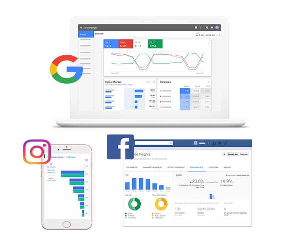 Gestion de campagnes publicitaires: Facebook Ads, Google Ads, campagnes d'influence.
